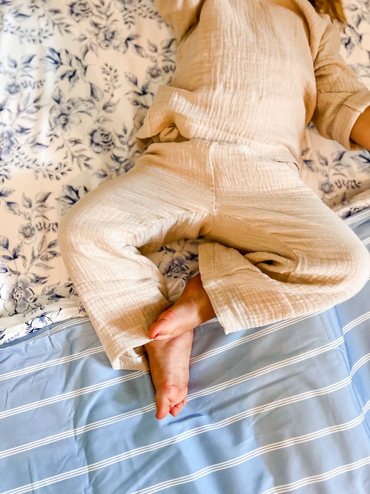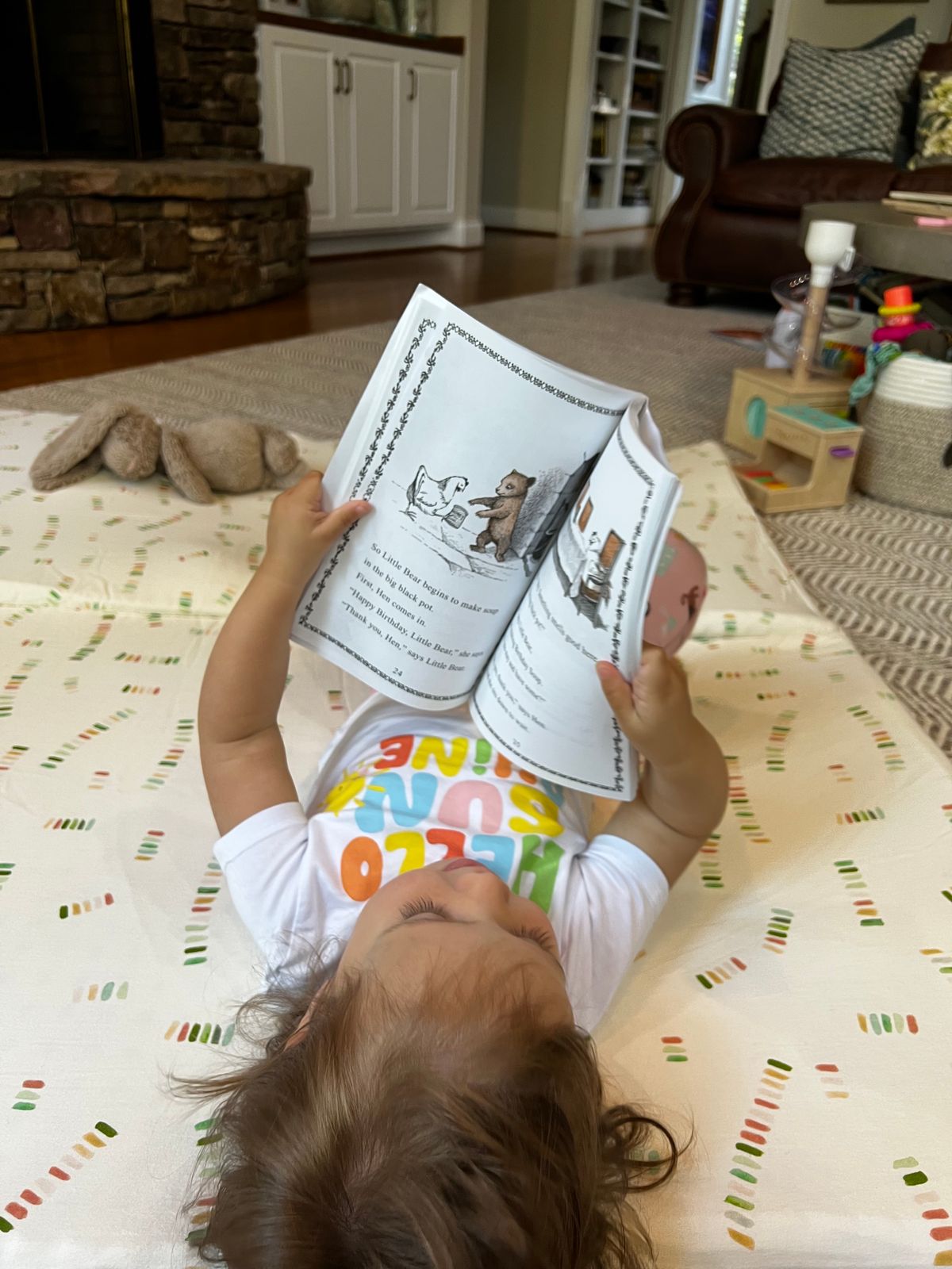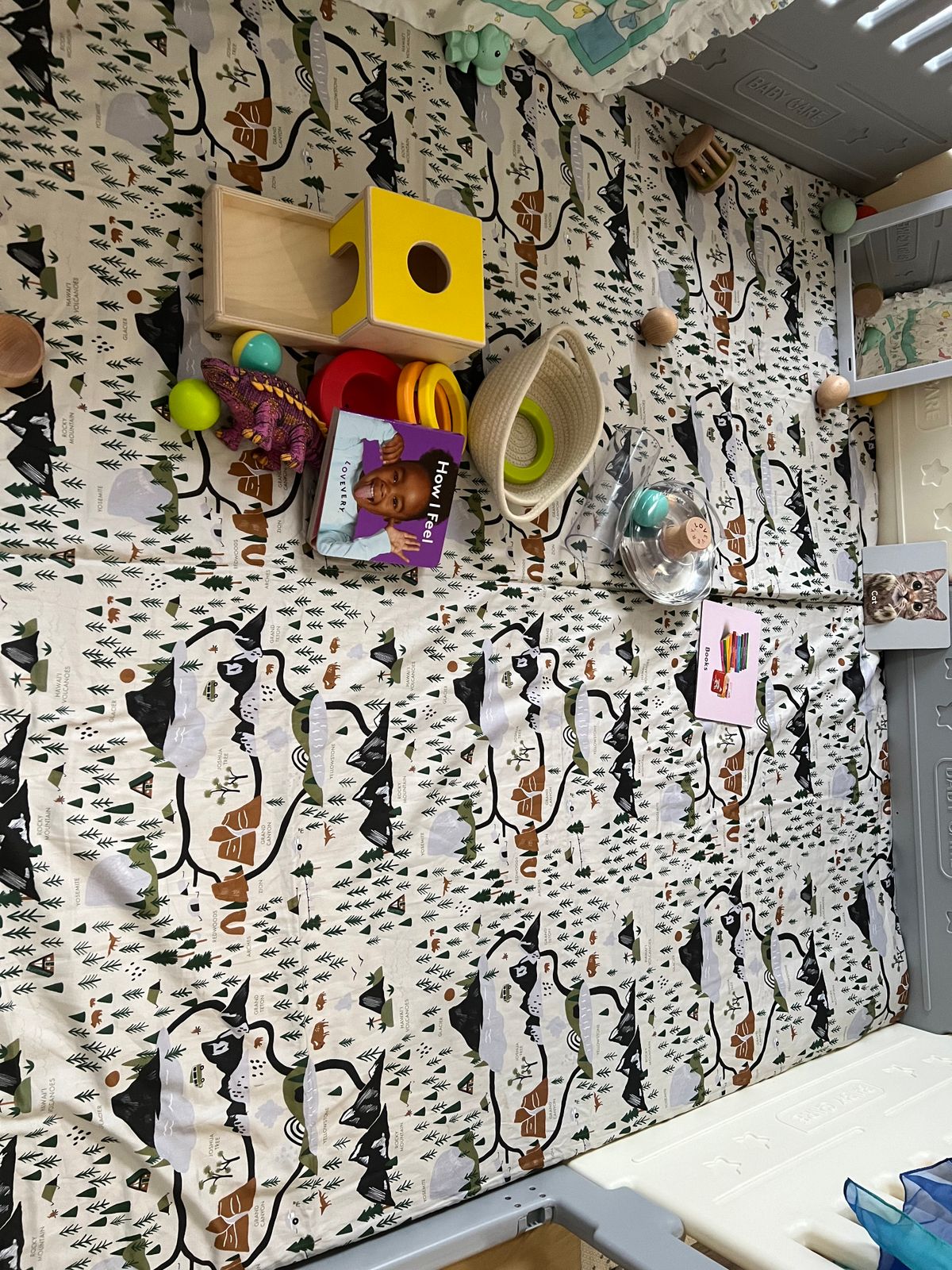 I’m in LOVE with the mat thickness and consistency, the cover is super cute, we love laying on it, and I love that the materials are nontoxic. Wish #1: please make a bigger size! My 7 mo old is super active, and it would be great to have a bigger size to span the room (maybe 8x10 😍); Wish #2: the mat itself is actually in 2 pieces, and there is a gap between the pieces that leaves a space (albeit small) of uncushioned space. Our little one somehow already found the gap with his noggin! I will say that the gap between the pieces shrinks when you wash the cover, so about 5 inches has shrunk to about 3 inches of unprotected space. Regardless, still a wonderful mat