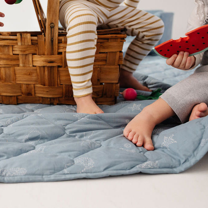 Ready for every family adventure, this roll-up picnic blanket features organic quilted water repellent cotton and a carry handle for comfort and convenience.