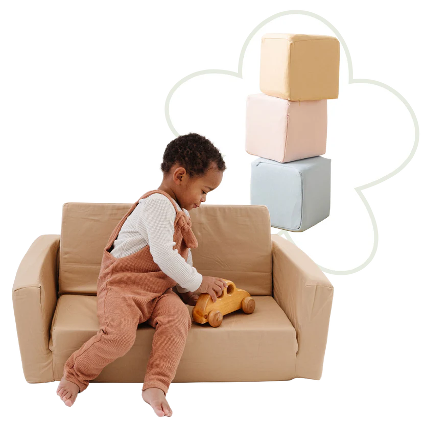 A convertible couch-to-lounger that makes a stylish addition to your little one’s play space.
