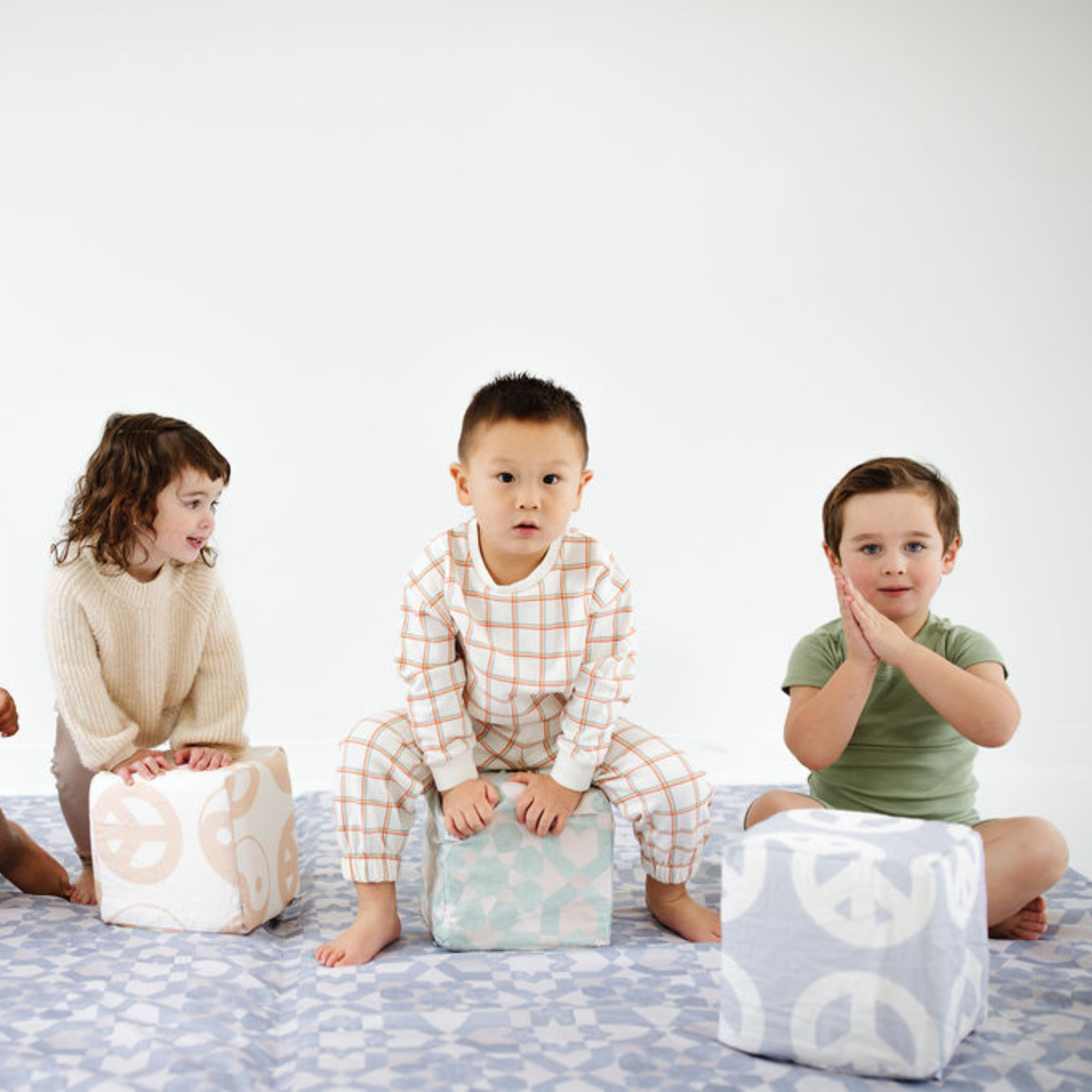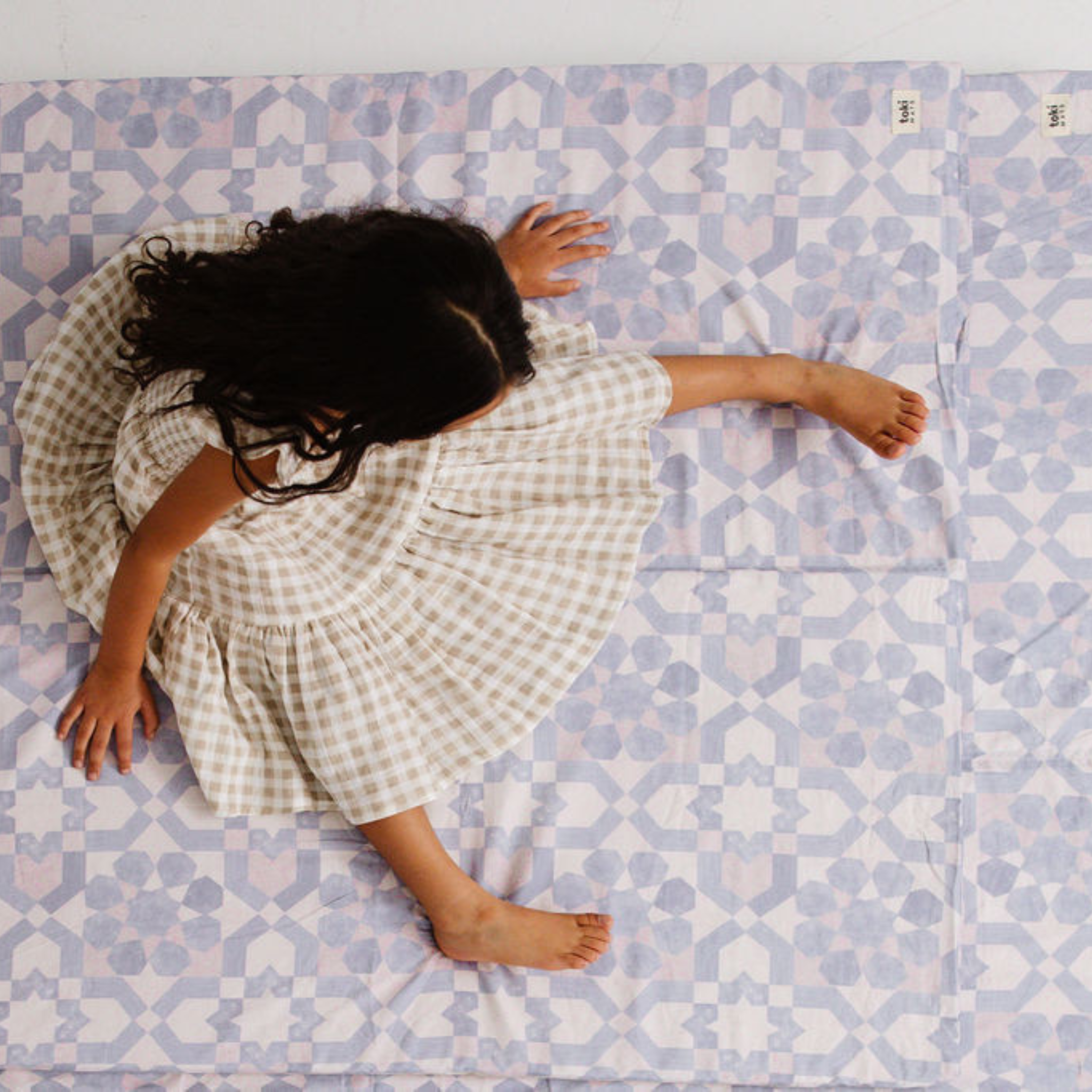 Cotton mat cover: To wash, unzip the cover on the sides and remove the foam inserts. Machine wash cold with mild detergent using a gentle cycle. If your cover was loose with room to shrink, feel free to dry with low heat. Once shrunken, it will stretch out with play for the perfectly snug fit. If your cover already fits the foam nicely, please hang-dry or tumble dry using no heat. Do not use fabric softener or chlorine bleach.
