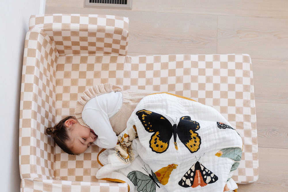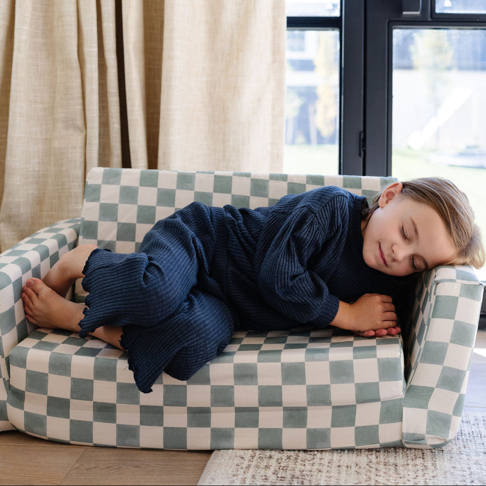 A convertible couch-to-lounger that makes a stylish addition to your little one’s play space.